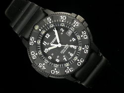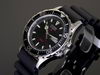 Dial: Black dial with inky gloss finish; tritium tube indices (green) with blue at 3, 6, 9 and 12; white hands with green tritium tubes.