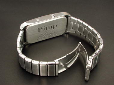 Overview The first issue for me is of course the name of this watch, or rather the brand: Pimp. A slight raising of the eyebrows occurred when I saw this but this is 2004 not 1954 so I assume to the younger generation there is little shock factor! The Star Performer is one of the latest products from the design group Tokyo Time Evolution. As is often the case, there isn't that much readily available information on the company behind this watch, suffice to say that they have had input into Spoon watches and are a wholly independent engineering/design group who are more interested in the product than the mass marketing/large scale production approach that might be taken by companies such as Casio. This may be the very reason that they are happy to produce limited quantities of very unusual designs. Tokyoflash tell me that they have asked Tokyo Time evolution to produce more products but they have refused, stating that they are happy with the almost hobbyist approach to things. So, here we have a watch that is unusual to say the least; it employs a series of LEDs to fulfil all functions and has fascinated me since it arrived on my doorstep. This is a true example of where the world is at in terms of combining the archaic with new technology and satisfying those with a penchant for gadgets as well as the younger generation who want something different. Packaging My example arrived from Tokyoflash within 3 days of leaving Japan via EMS and was well wrapped in bubble wrap within the standard EMS shipping bag. As an aside, all my communications with Tokyoflash have been dealt with very quickly and courteously, all questions answered with no problem despite their sometimes ludicrous nature. The watch arrived in a standard tin type box and was well protected by a foam insert which is cut to allow the watch to fit snugly and well protected. The watch itself sits in the cut out area and the excess foam is used as a fill between watch and bracelet. Functional and effective given that most of these will be sent via mail order to destinations theoretically worldwide. The bracelet is fully wrapped in plastic and the watch crystal has a protective sticker.